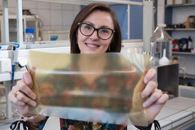 Same skrobia czy celuloza nie wystarczą do produkcji opakowania, ponieważ są rozpuszczalne w wodzie – a nie chcielibyśmy folii, które rozpłyną się pod wpływem wilgoci. Dlatego do cukrów złożonych naukowcy dorzucają dodatki, które mają temu zapobiec (jak również poprawić inne parametry). Idealnie byłoby, gdyby te również były pochodzenia naturalnego. Doktor Jamróz furcelleran wzbogaciła o białko pochodzenia zwierzęcego: żelatynę. Taką folię każdy byłby w stanie przygotować w domu. Obydwa składniki należy rozpuścić i zmieszać, a następnie wylać na formę, odparować i voila! – śmieje się badaczka. Dodaje jednak, że jej folie oferują coś, czego nie mają odpowiedniki z tworzyw sztucznych. Plastiki nie potrafią walczyć z bakteriami, bo nie mają właściwości czynnych. A do moich folii można dodać działające antybakteryjnie nanoselen lub nanosrebro, które powstrzymują rozwój drobnoustrojów – tłumaczy dr Jamróz.
